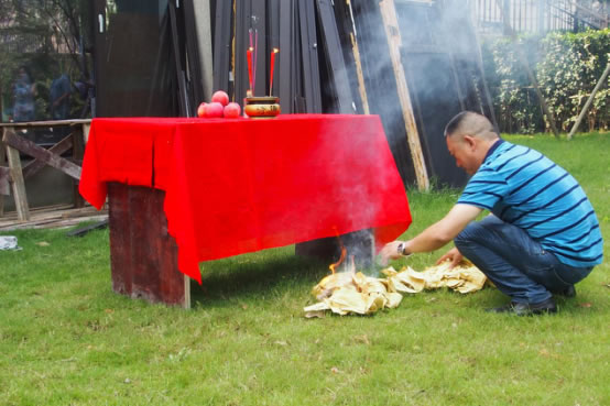 9點,開工進場典禮正式啟動。祭拜天地神靈,放禮炮以示喜慶。