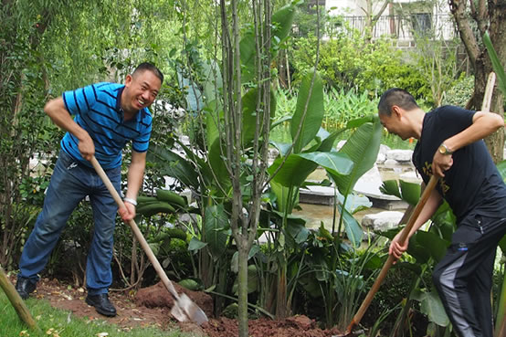 由業(yè)主代表鏟第一把土,從此該別墅花園進行脫胎換骨的第一步。