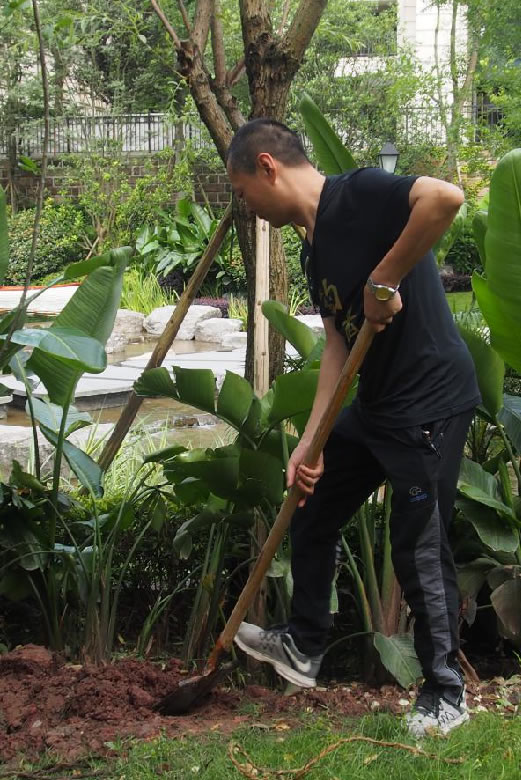由業(yè)主代表鏟第一把土,從此該別墅花園進行脫胎換骨的第一步。